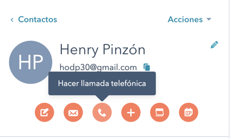 Antes que pasen 15 minutos deberás llamar al cliente y dejar las notas que describen el resultado de la conversación. Esto podrás hacerlo desde la App de tu celular o desde la plataforma web de Hubspot haciendo click en el botón de llamada. (Recuerda dejar un correo de voz con tus datos en caso que el cliente no conteste la llamada)